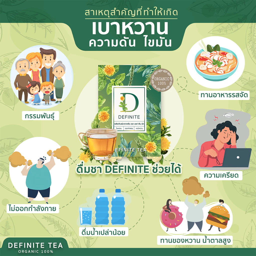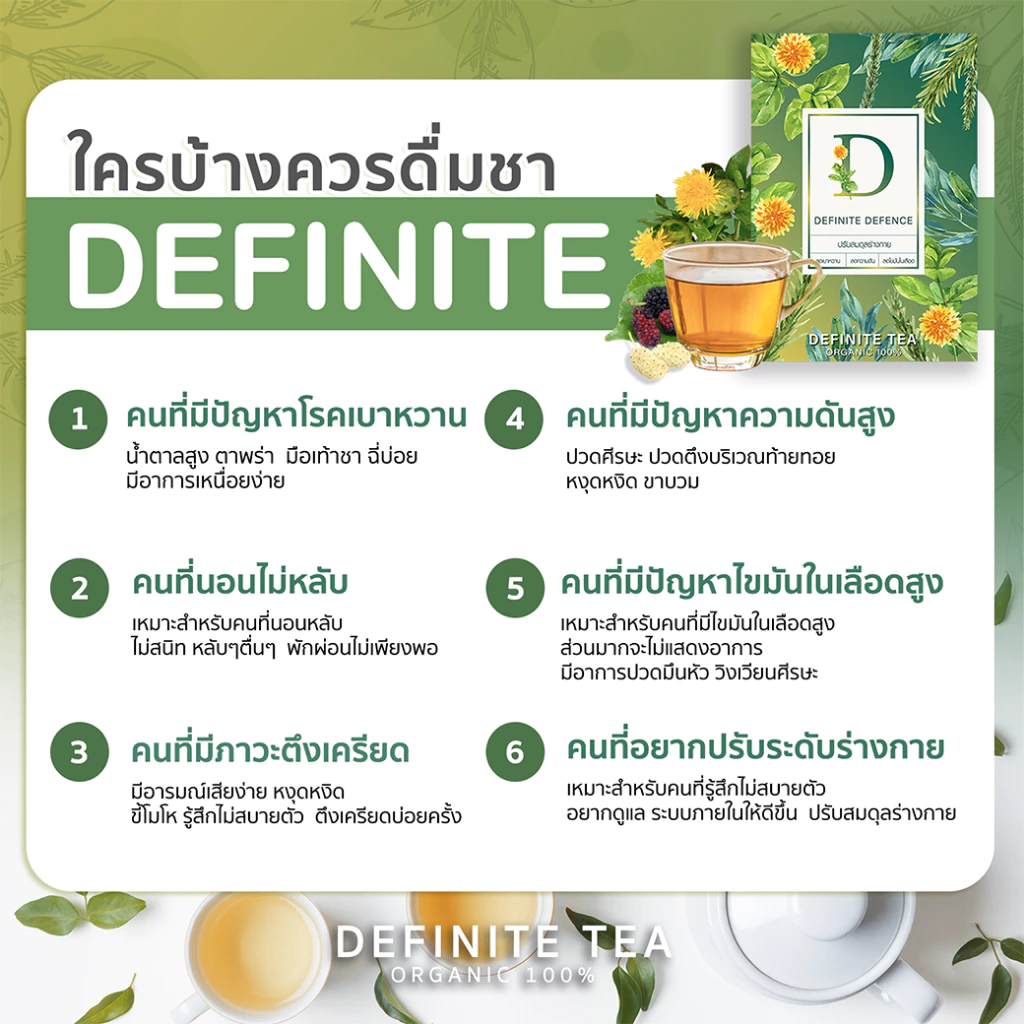 รายละเอียดผลิตภัณฑ์ : DEFINITE 1 กล่อง บรรจุ 20 ซองชา ปริมาณ 2 กรัม/ซอง