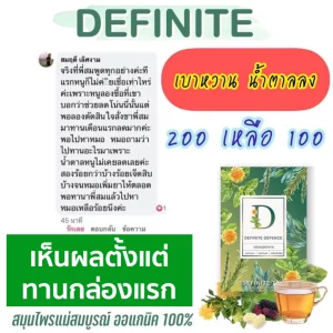 มือชาเท้าชา ชาที่นิ้วมือนิ้วเท้า ตาพร่ามัว คอแห้ง หิวน้ำบ่อย หิวบ่อย ฉี่บ่อย เวียนหัว วูบบ่อย มีอาการมึน นอนไม่หลับ หลับยาก น้ำตาลสูง ปัสสาวะบ่อย แผลหายช้า ติดเชื้อง่าย ร่างกายไม่แข็งแรง ผิวเหี่ยว ผิวแห้ง ผิวโทรม ริ้วรอย แก่ก่อนวัย ผิวหนังคัน ปากแห้ง อาการของโรคเบาหวานทั้งหลาย รักษาได้ด้วยสมุนไพรธรรมชาติ Definite สูตรนี้จะช่วยแก้ปัญหาที่ต้นตอ ปรับสมดุลทั้งระบบให้อาการและระดับเบาหวานดีขึ้น ไม่ใช่รักษาตามอาการ