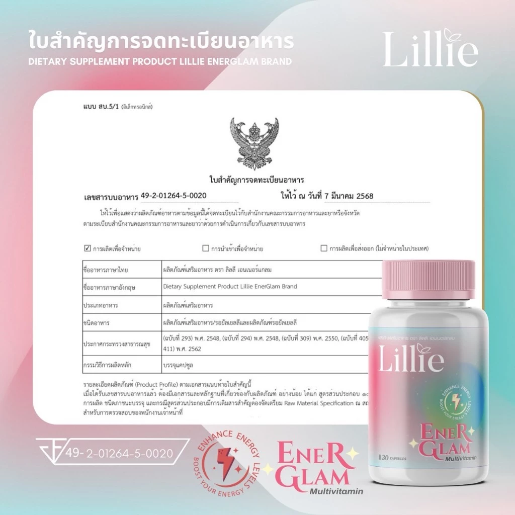 ผลิตภัณฑ์เสริมอาหาร ตรา ลิลลี่ เอนเนอร์แกลม
