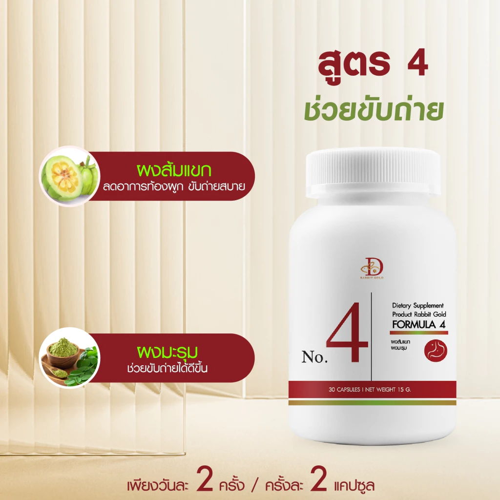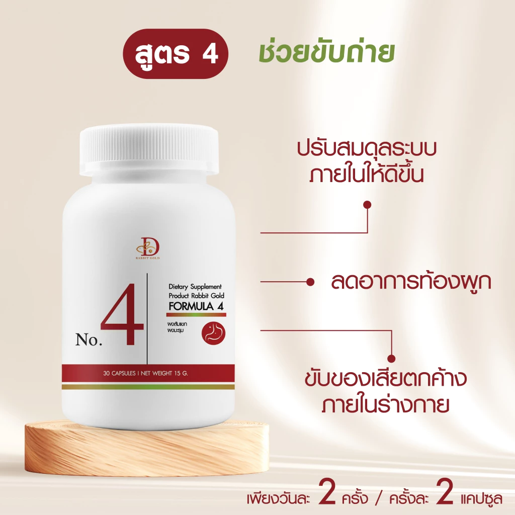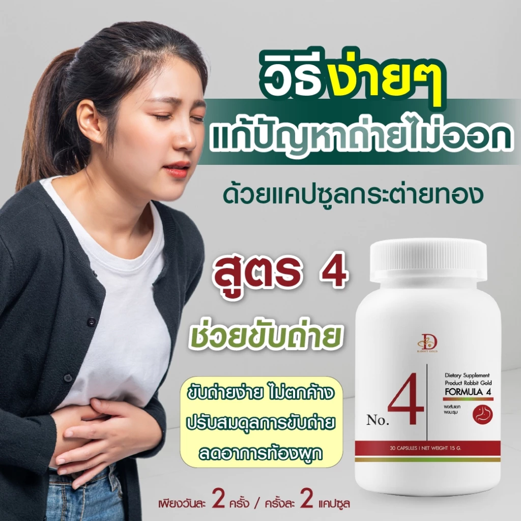 Rabbit gold สูตร 4 ขับถ่าย ลดท้องผูก ขับของเสีย ช่วยในการขับถ่าย ขับของเสียที่ไม่ดีออกจากร่างกาย ปรับสมดุลระบบภายในให้ดีขึ้น ช่วยลดอาการท้องผูก